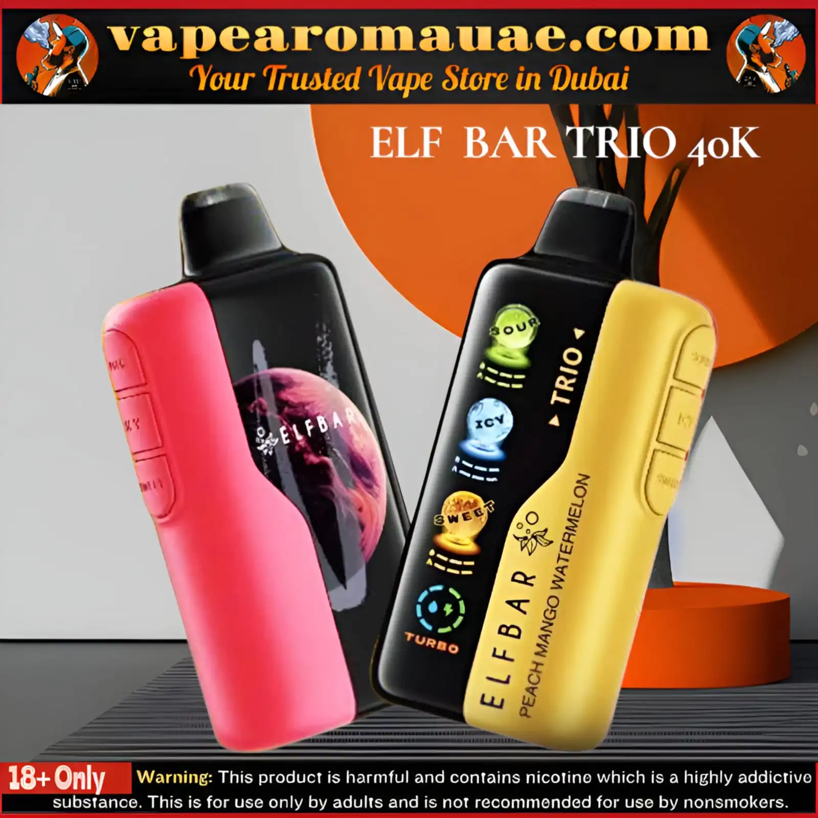 Vape Aroma UAE sells products containing nicotine, a substance that is addictive. Sales are strictly for adults aged 18 years and older, in line with UAE regulations. If you are pregnant, nursing, or have heart or lung conditions, consult a healthcare professional before using any vape product.